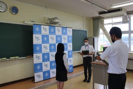 放送部2年の吉岡那菜さんと田中晶さんの2人が表彰式の司会進行を務めました。