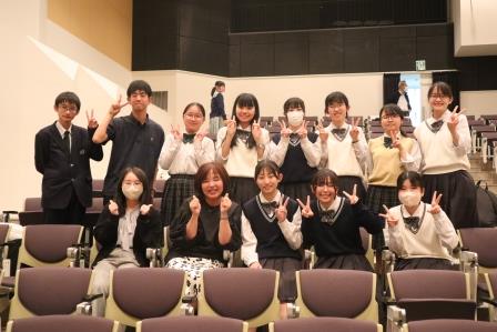 一緒に写っているのは、メイン司会のRSK岡田アナウンサーと、生徒司会の就実高校、岡山朝日高校、明誠学院高校の放送部の仲間たちです。