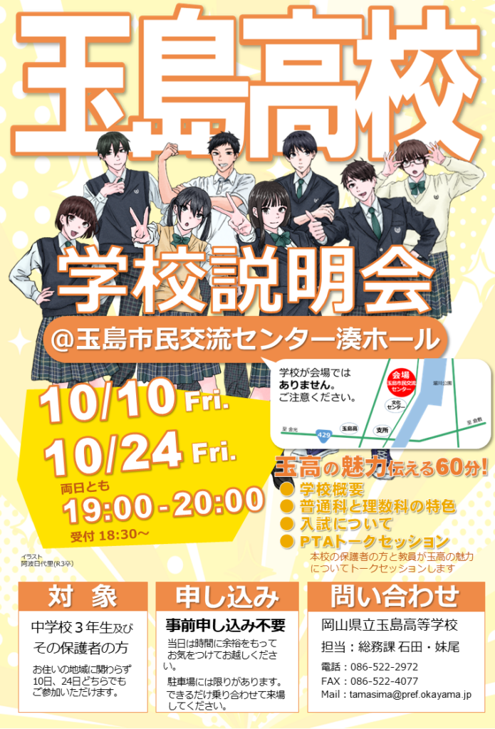 中学校3年生、保護者の方対象の学校説明会を開催いたします。