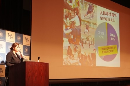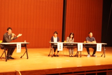 玉島市民交流センター湊ホールを会場に、100名ほどの保護者や中学生の方が来場してくださいました。