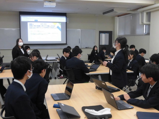 2年生は、事前課題としてテーマに関する新聞記事から個々にスライドを作成してクラスでプレゼンを行いました。