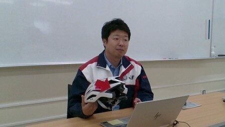 JAFの秋田さんを講師に、安全と安心の意味をはじめ、ヘルメットの重要性、来年度から変わる自転車のルールなど動画を用いて分かりやすく解説していただきました。