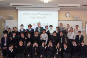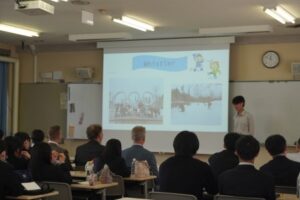 4時間目は新しくなった合併教室で”My highlight in Canada”のタイトルのもと、カナダでの思い出を写真と共にスピーチしました。また、ESS部が玉島高校クイズで会を盛り上げてくれました。