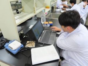 化学分野における研究活動の基礎を身に付けることを目的とし,岡山大学 理学部 化学科と連携し、5グループに分かれて学生・大学院生(留学生も含める)、大学の先生方と探究活動を行いました。